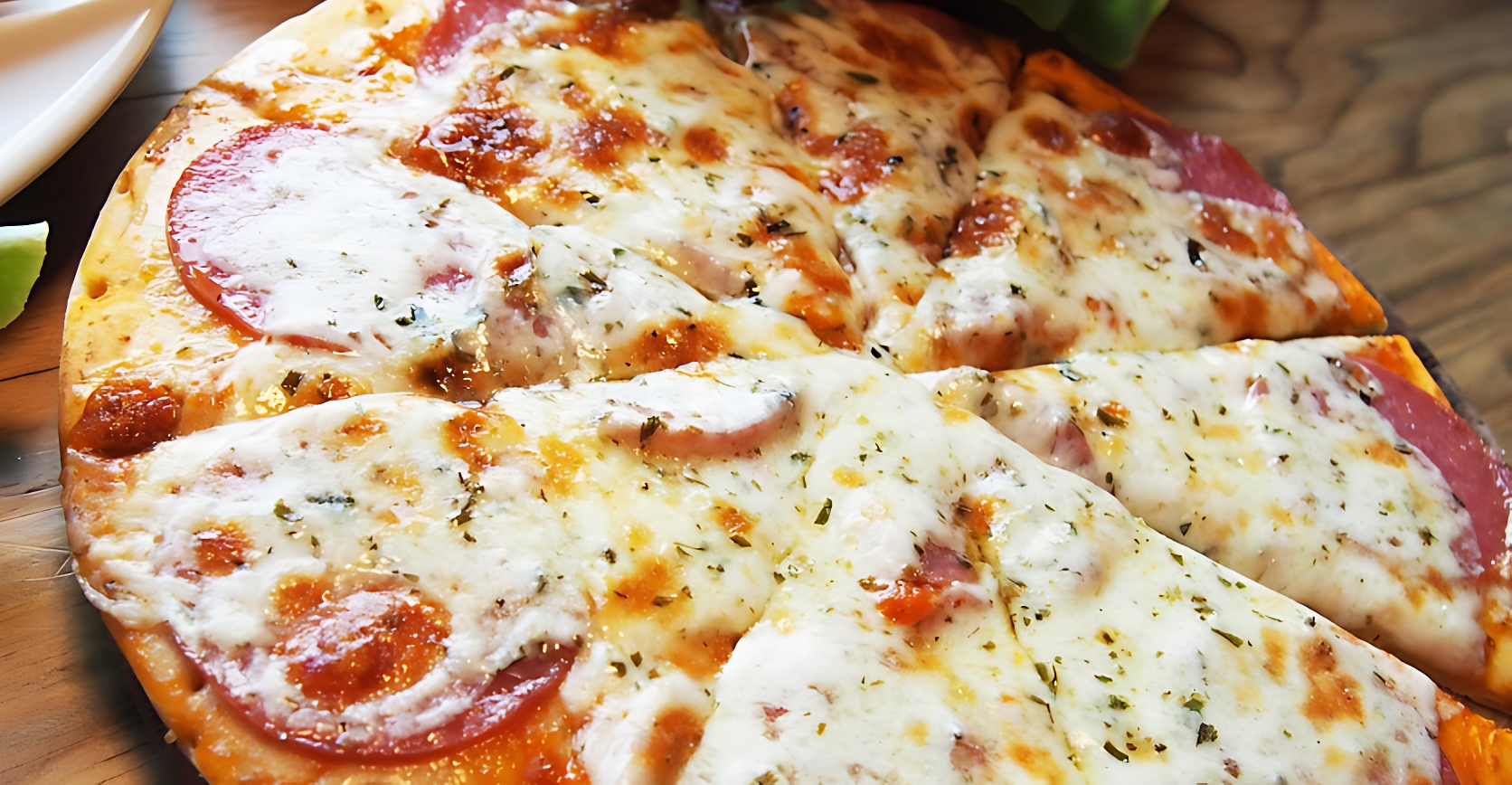 * 얇고 넓은 피자로 여러 명이 나눠 먹기에 안성맞춤